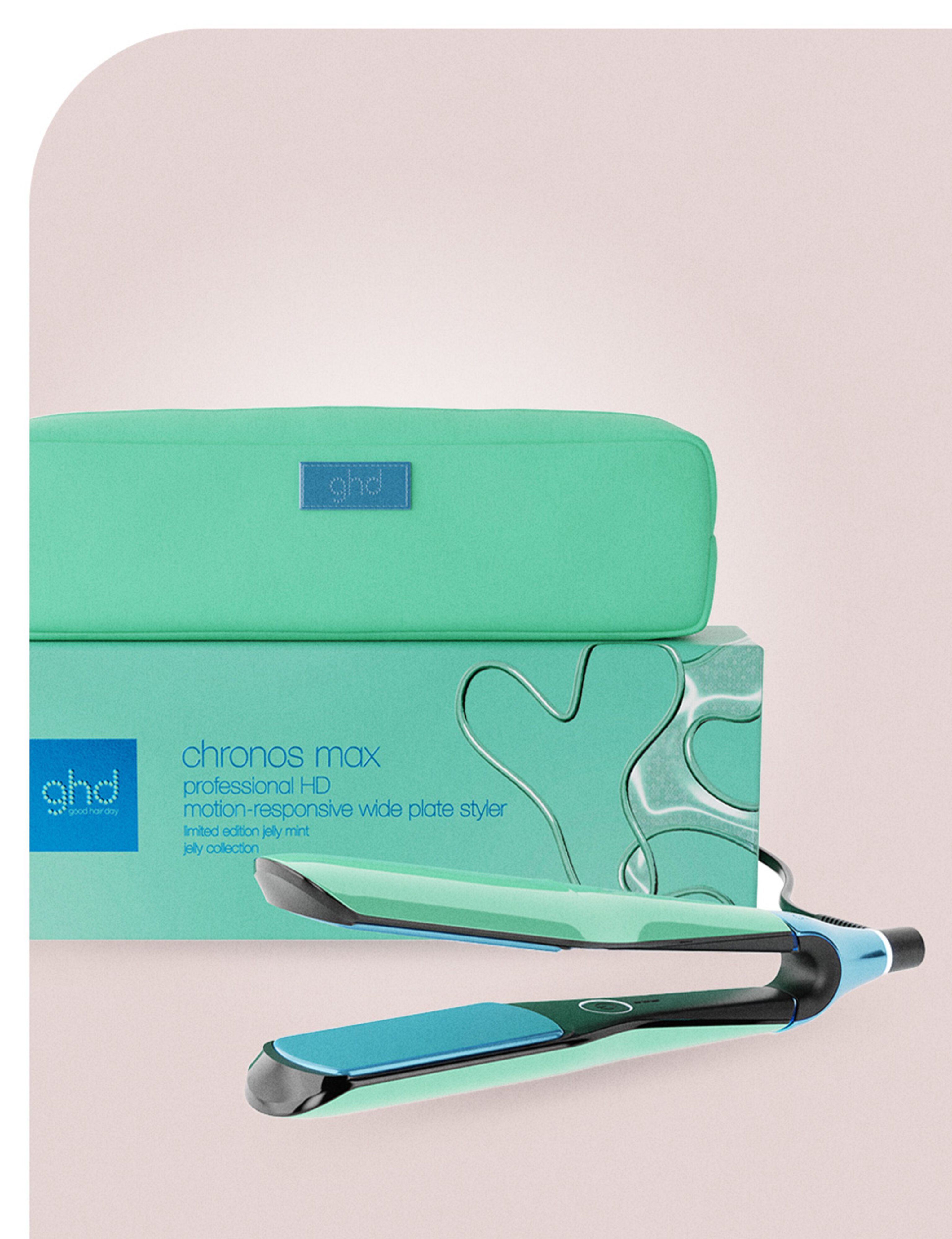 "I’ve loved the Chronos straightener ever since it launched and it’s become a mainstay in my routine ever since it came out – the wide plates do wonders for cutting down heat time on my thick, curly hair. The new Jelly Mint colourway makes it a stunning visual treat, too."