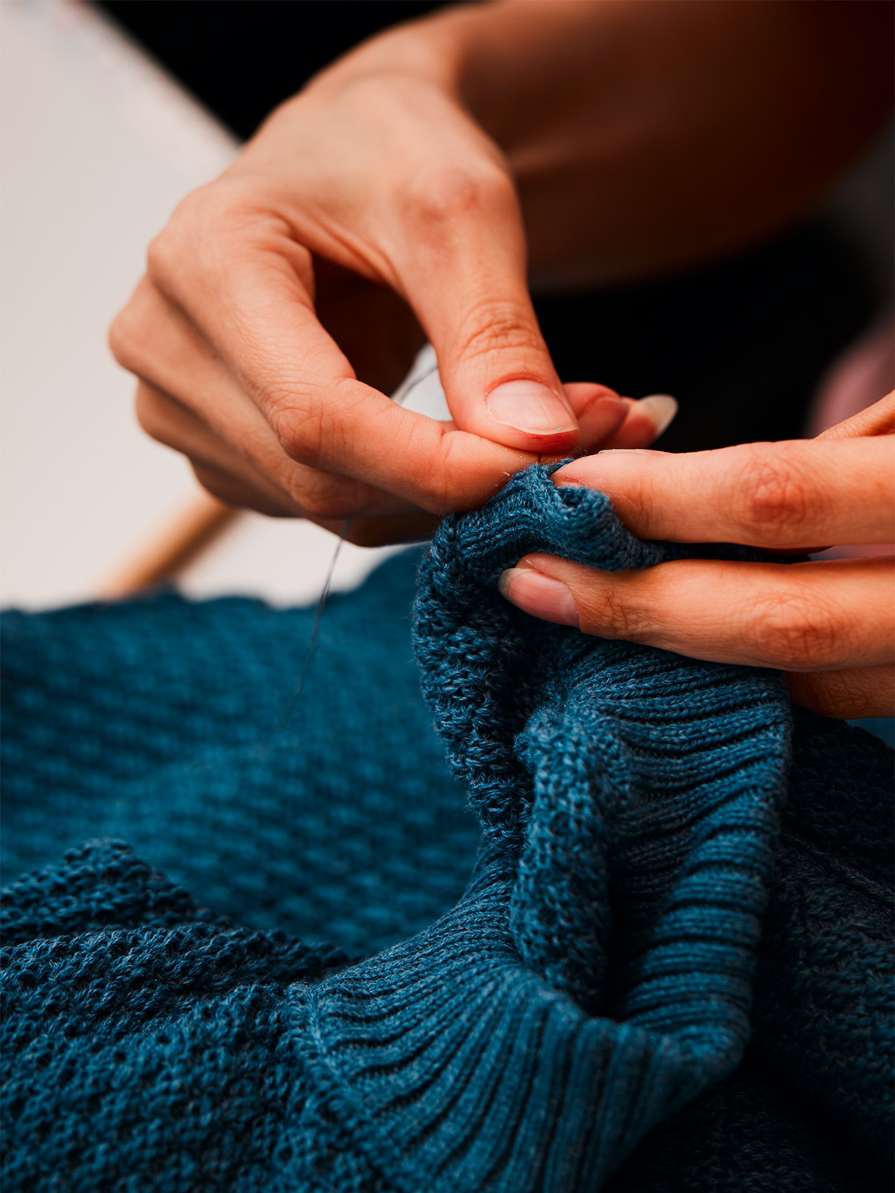 That history is alive in more tangible ways, too – in fact, it’s a key branch of Barrie’s philosophy. Hearing that a workplace is ‘like a family’ may often be construed as a simple platitude – but here, the phrase regularly applies in a literal sense. For example, Morgan Grieve, who grew up locally and tells us (as she diligently attaches a sleeve to a jumper) that her parents both still work here. And then there’s Ellie Douglas, who deftly sews the Harrods label into the neckline of the finished product as she lists several family members who work in different departments – including her grandma. “Teatime conversation is often about work,” she smiles.